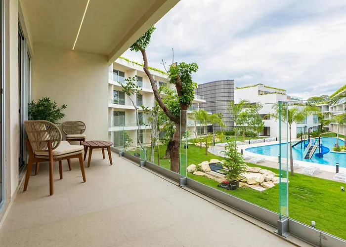 Tijdens een verblijf in The Leaf C108 Appartement Playa del Carmen van 83 m² kunnen gasten zich ontspannen op een terras op minder dan 1 km verwijderd van Skydive Playa.